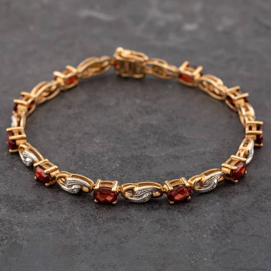 9ct Yellow Gold Garnet & Diamond 7.25 Inch Bracelet 41281123